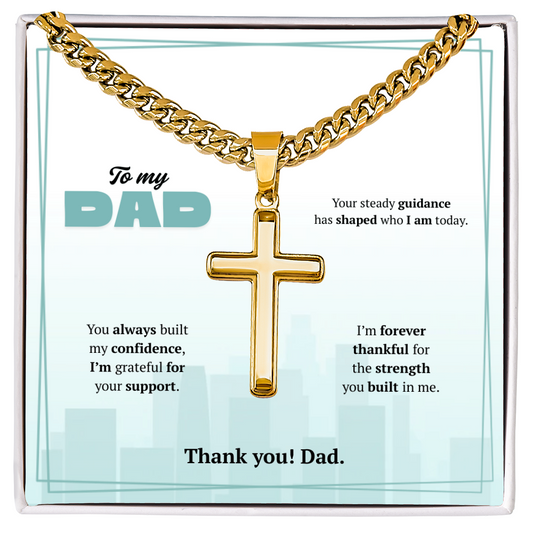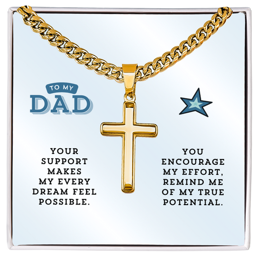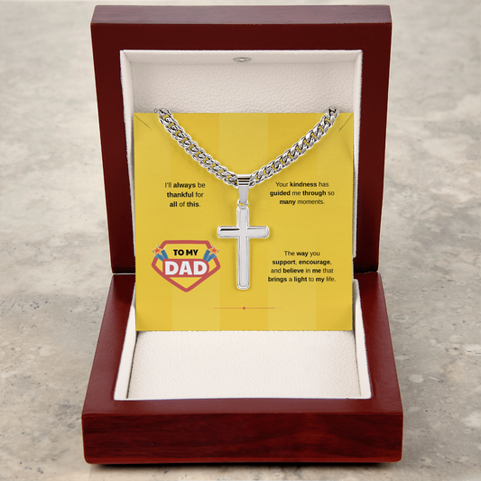To My Dad | Grateful for Your Support | Artisan Cross with Cuban Link Chain