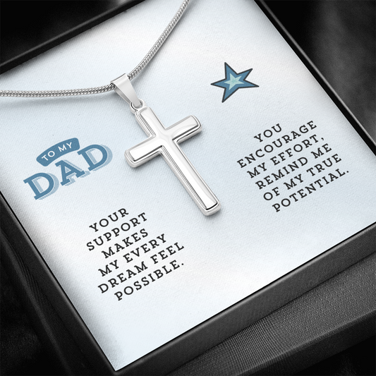 To My Dad | You Encourage My Effort | Artisan Cross Necklace with Snake Chain