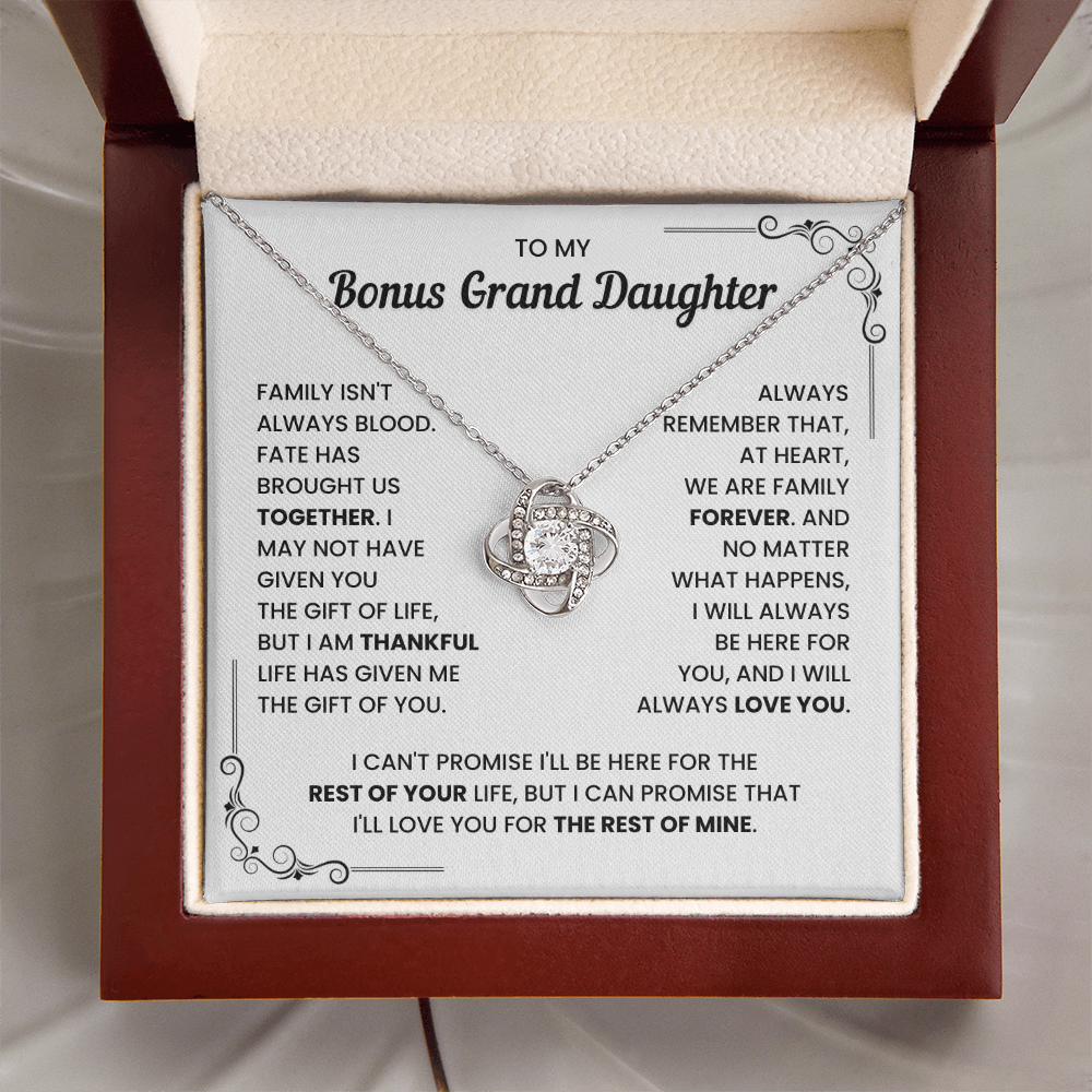 To My Bonus Granddaughter – We Are Family Forever – Love Knot Necklace To My Bonus Granddaughter – We Are Family Forever – Love Knot Necklace